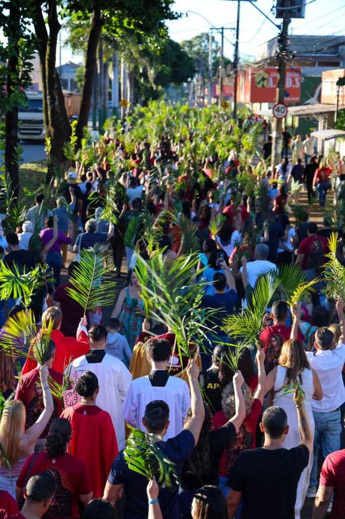 Com ramos verdes nas mãos, os participantes caminharam em clima de alegria e espiritualidade, recordando a entrada triunfal de Jesus em Jerusalém. A celebração, além de rememorar o episódio bíblico, simbolizou a peregrinação dos cristãos rumo à vida eterna junto a Deus.