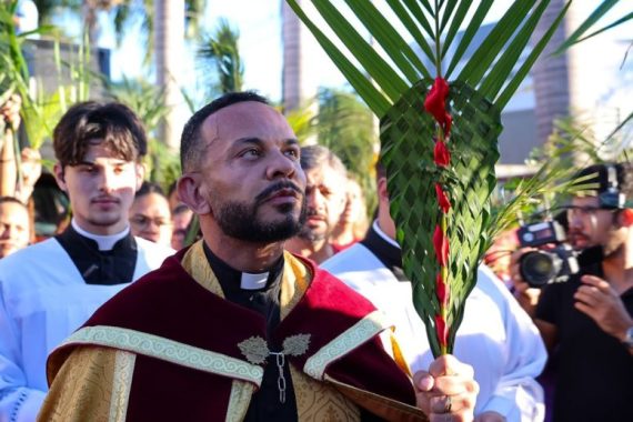 “O Domingo de Ramos nos traz uma lição profunda sobre a nossa própria jornada. Os ramos que carregamos hoje simbolizam a vitória de Cristo e nos lembram do nosso batismo. Jesus nos mostra, através da sua entrada humilde no jumentinho, que a verdadeira vitória não está no poder terreno, mas na vida eterna. Seguir a Cristo significa ter a coragem de renunciar a si mesmo, e permanecer fiel diante das dificuldades”, destacou o pároco da igreja, Padre Marcos Rogério.