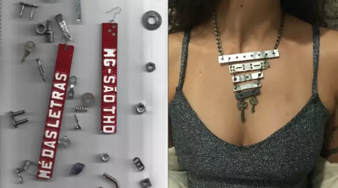 Hoje, Bruna comercializa brincos, colares e pulseiras em feiras paulistanas e em sua loja online. “As peças de metal já possuem um brilho e um peso interessante. Com o tempo, fui abrindo as possibilidades de uso do lixo plástico, borrachas e tecido com a aplicação de técnicas de costura, crochê e bordado”, explica.