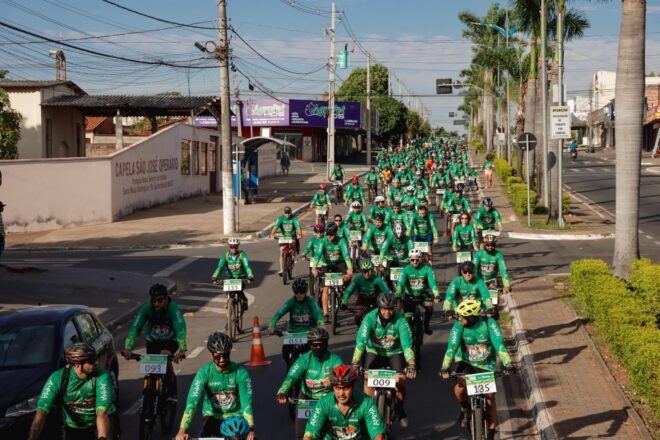 Cerca de 200 ciclistas participaram do percurso de 24 km que uniu esporte, saúde e conscientização ecológica; iniciativa reforça compromisso da gestão com o meio ambiente